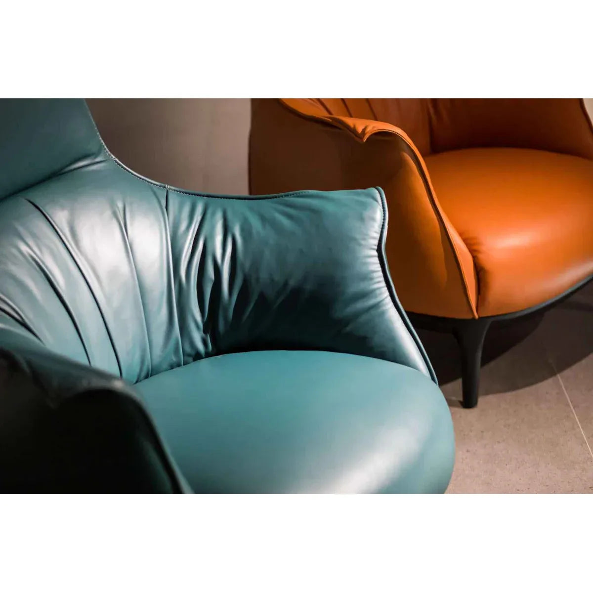 Crafted with FA-level half leather upholstery, it combines premium tactile quality with durability. Its sculpted form, supportive back, and generous proportions make it a refined addition to residential or commercial spaces.