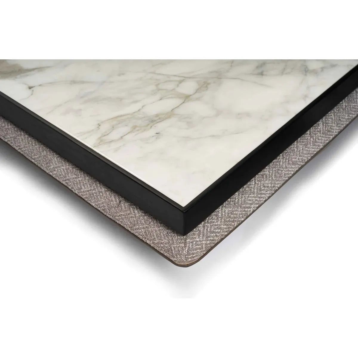 Fabric upholstery in grey with jade rabbit natural stone side tables.